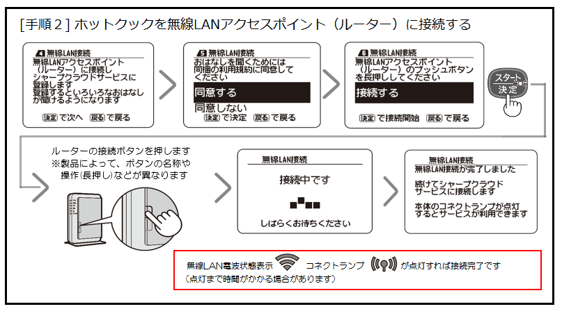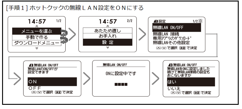 ※ホットクックで設定する前に無線LANアクセスポイント(ルーター)の電源を入れておいてください。