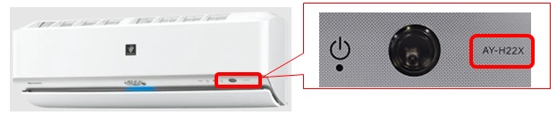 また、一部のモデルでは、室内機の前面パネル部にて確認可能です。(表記例については、下記参照)