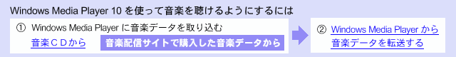 ■ 音楽配信サイトで購入した音楽データを Windows Media® Player10 に取り込む