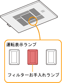 ※フィルターお手入れランプ(赤点灯)は、総運転時間約720時間 (1日24時間運転した場合、約1カ月)経過したときに、運転表示ランプの中央が点灯してお手入れ時期をお知らせします。