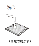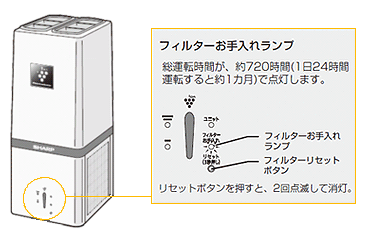 お手入れが終了したら、「フィルターリセットボタン」を3秒以上押して、「フィルターお手入れランプ」を消灯してください。 ※「フィルターお手入れランプ」が点灯していなくても、お手入れが終了したら、「リセットボタン」を3秒以上押してください。 |