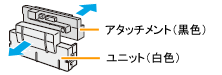 交換の前に、交換用ユニットからアタッチメント(黒色)を取りはずします。