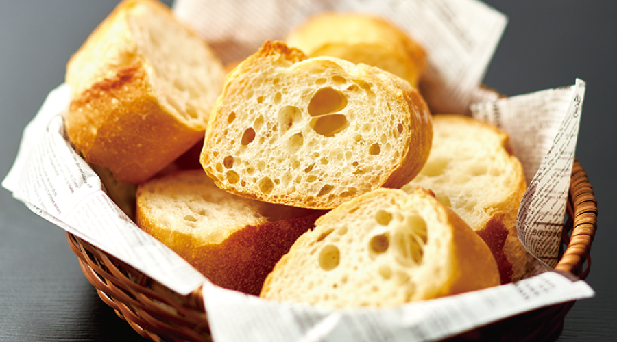 フランスパンは買ってから時間が経つにつれて水分が失われてパサパサしていきますが、ヘルシオ トースターなら、過熱水蒸気で水分を補いながら加熱するので、中はふんわり、外はパリッと焼きたてのようなおいしさに復元します。