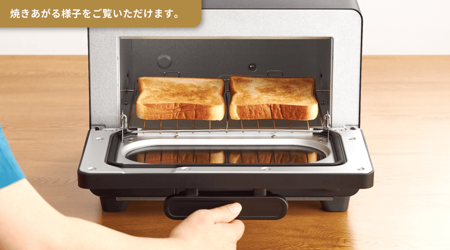 たっぷりの過熱水蒸気で包み込むことで、パンの水分を逃さずに焼き上げます。一般的なトースターに比べ、おいしさに大切な水分量の減少を抑えて焼き上げています。