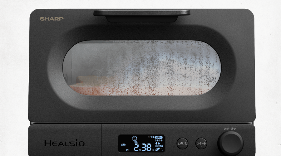 ウォーターオーブン ヘルシオと同様の構造を持つ「ヘルシオエンジン」を搭載。たっぷりの過熱水蒸気(100℃を超える温度に加熱された水蒸気)量をコントロール。たっぷりの過熱水蒸気でパンを包み込み、内部の水分を逃すことなくおいしく焼き上げます。過熱水蒸気を調整して好みの食感に仕上げることもできます。